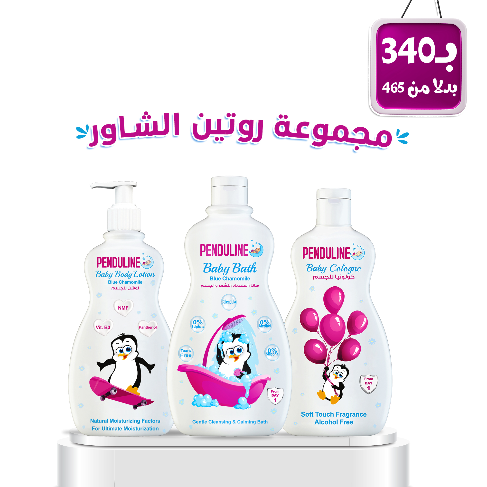 عروض وخصومات حصرية من بندولين بيبي على "مجموعة روتين الشاور" اللي فيها ( سائل استحمام بندولين 2*1 للشعر والبشرة 300 مل + لوشن بندولين للجسم 200 مل+ كولونيا بندولين 100 مل) بسعر 340 بدلا من 465 جنيه